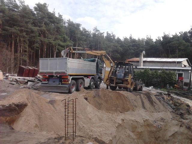 - Załadunek i rozładunek na wywrotki materiałów sypkich: ziemi, piasku, kruszyw, czarnoziemu, odpadów budowlanych, gruzu, żwiru